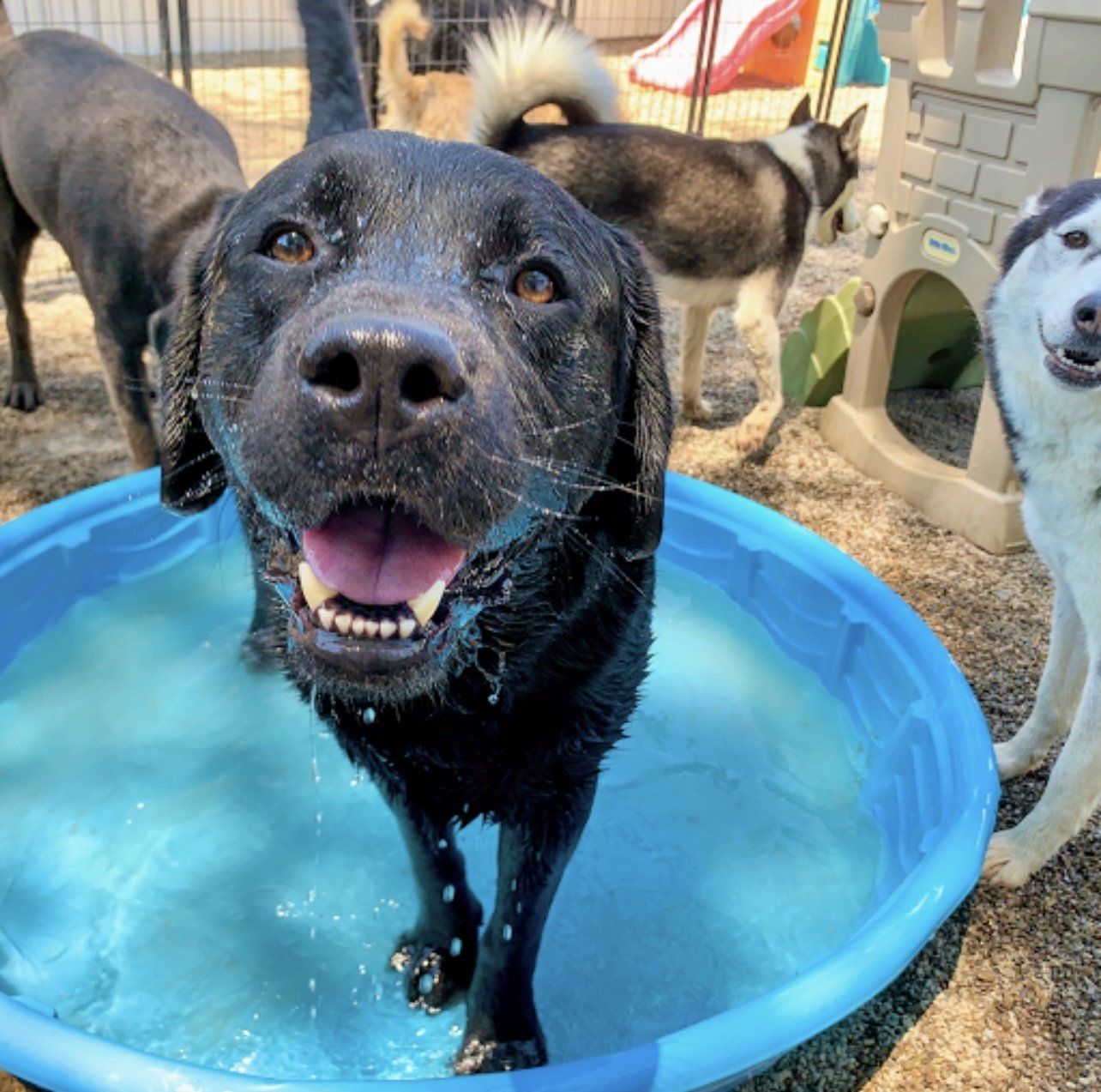 & Free doggie daycare pool parties in the summer!